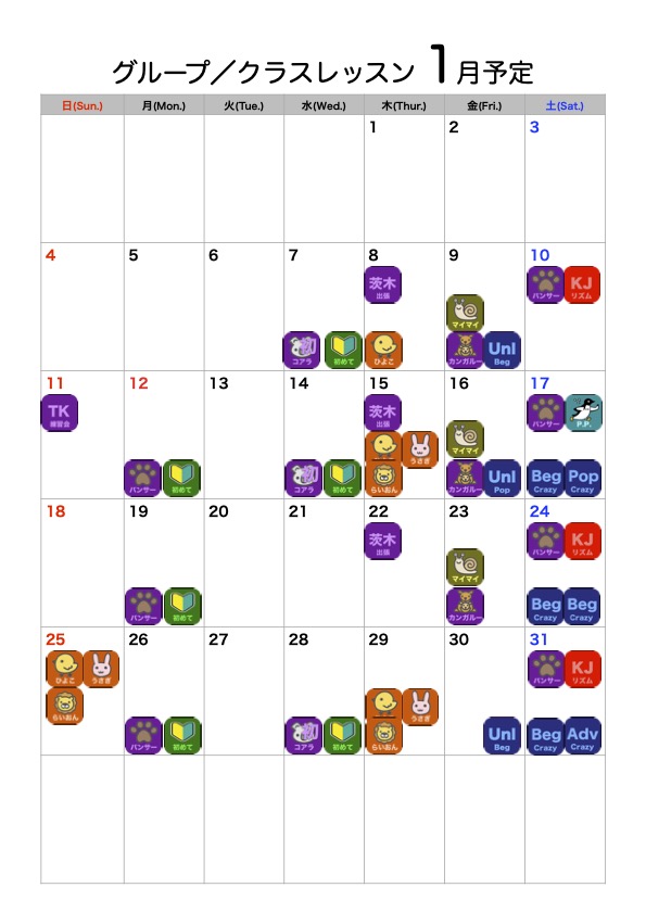 が表示されているものは、このグループレッスンとなります。