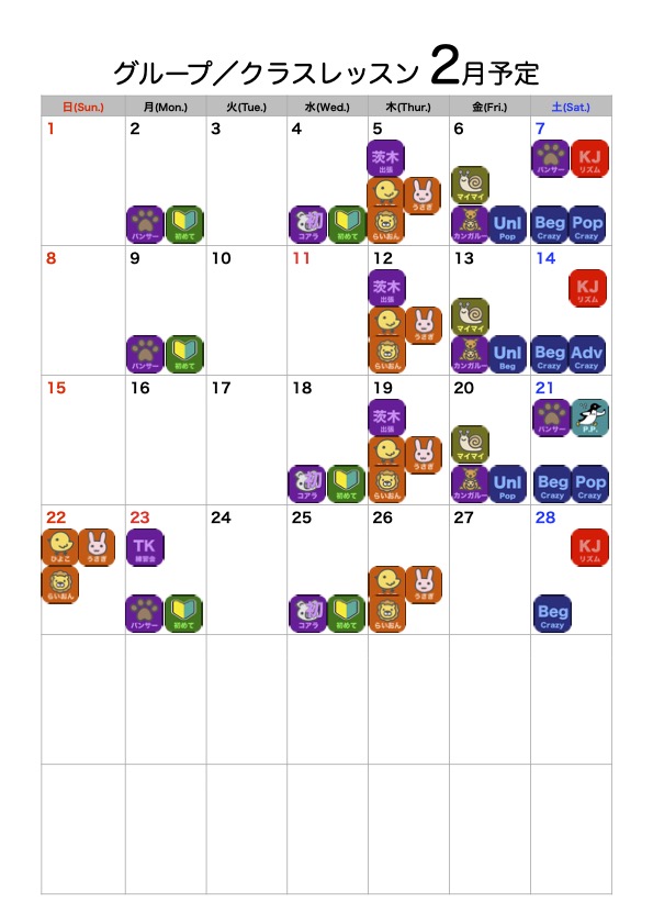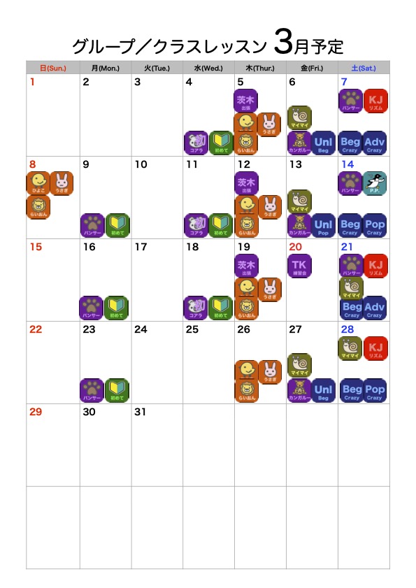 が表示されているものは、このグループレッスンとなります。